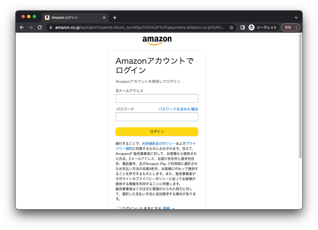 Amazonアカウントに登録されている配送先情報や支払方法を利用して決済を行うことができます。