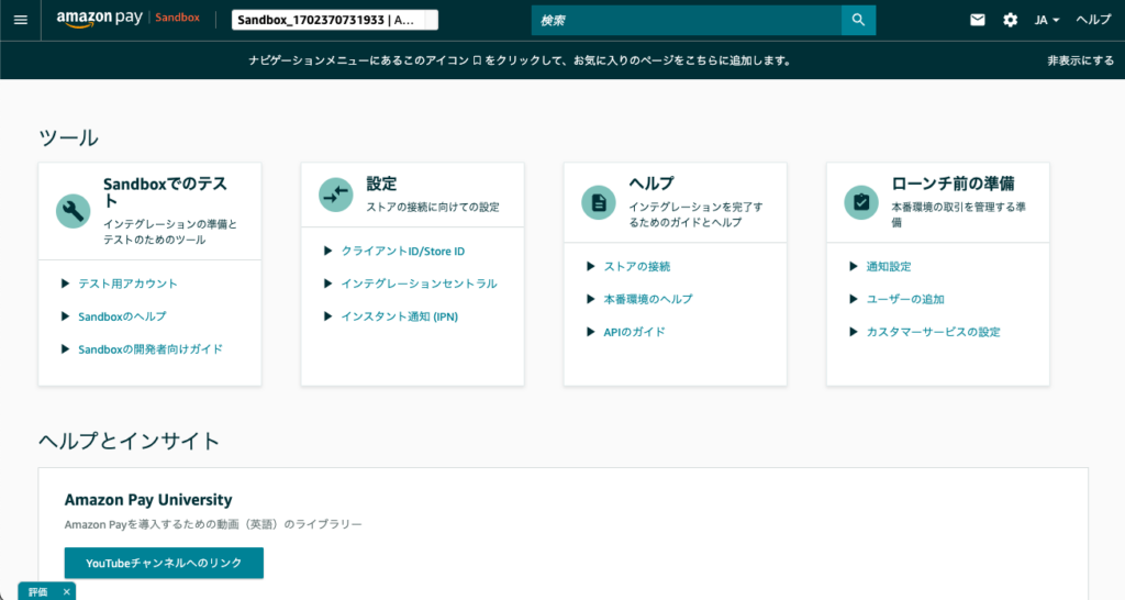- Amazon Pay事業者アカウントの登録