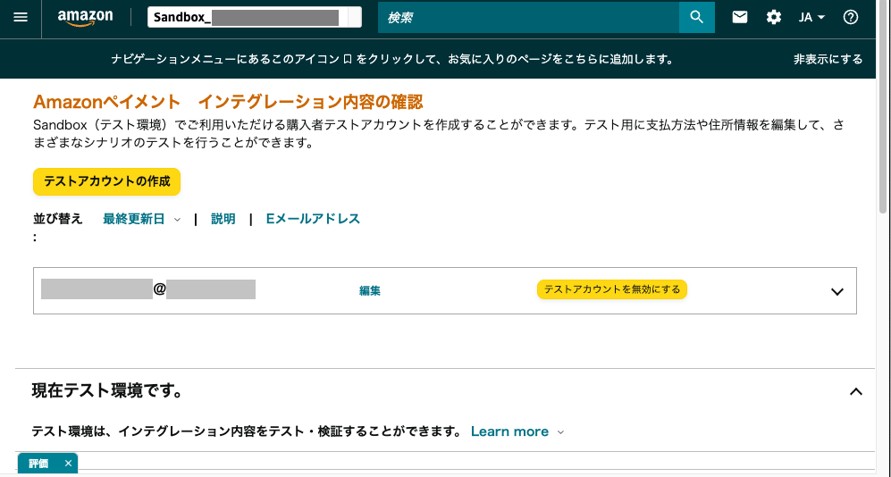 SANDBOX環境で決済テストを行うためのAmazonログイン用テストアカウントを作成します。