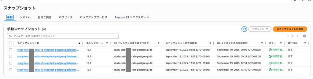 今回確認したところ、RDS削除時にスナップショットを残してくれていました。